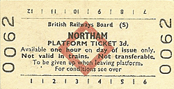 | Northam Junction signalbox controlled the junction between the main line and the access to the old docks, as well as Northam sidings. The latter still had a major traffic in cement and also in scrap metal that was transferred to the river berth via a private siding that ran through the car park of the Southern Television studios. At one time there was a station here as well as you see from the platform ticket in our collecton. |